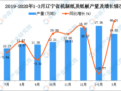 - 2020年3月辽宁省机制纸及纸板产量及增长情况分析