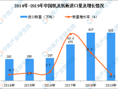 - 2019年中国纸及纸板进口量为625万吨 同比下降0.3%