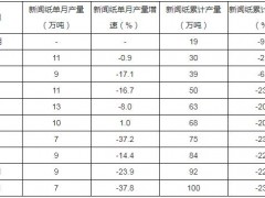 - 2019年1-11月全国新闻纸产量为100万吨 同比降23.8%
