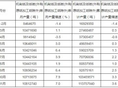 - 2019年1-11月中国机制纸及纸板产量113757940吨,同比增长3.6%