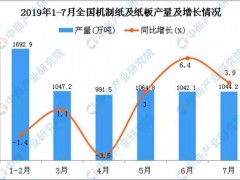 - 2019年1-7月全国机制纸及纸板产量统计数据分析