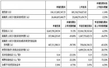 三季报显示,晨鸣纸业2019年第一季度到第三季度实现营收220.14亿,同比下降6.29%;归母净利10.68亿同比下降56.97%,扣非归母净利7.51亿,同比下降65.52%。其中第三季度单季实现营收86.66亿,同比增加9.12%,归母净利5.58亿,扣非归母净利4.48亿。