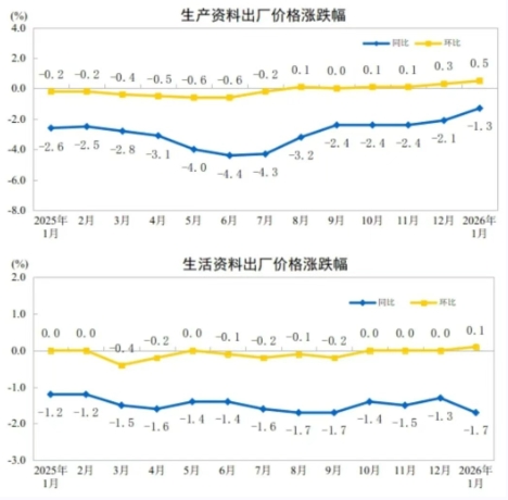 2026年1月份工业生产者价格主要数据