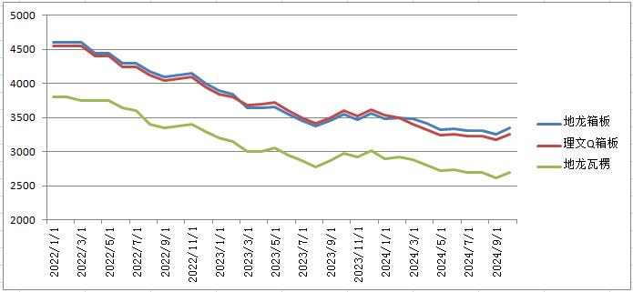 瓦楞纸小幅上涨,市场价格地龙2690元/吨。(数据截止2024/11/10)